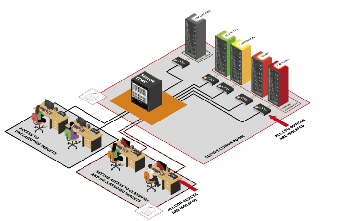 La technologie basée sur les profils de sécurités attaché aux unités (déports et matrices) empêche tout intrusion potentielle et permet le positionnement de l'unité réceptrice dans un lieu non-classifié.