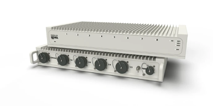 Mini matrice KVM HSL reprenant l’ensemble des caractéristiques précédemment mentionnées, avec pour particularité que la version durcie est certifiée MIL‑STD‑810G et offre une protection IP67.